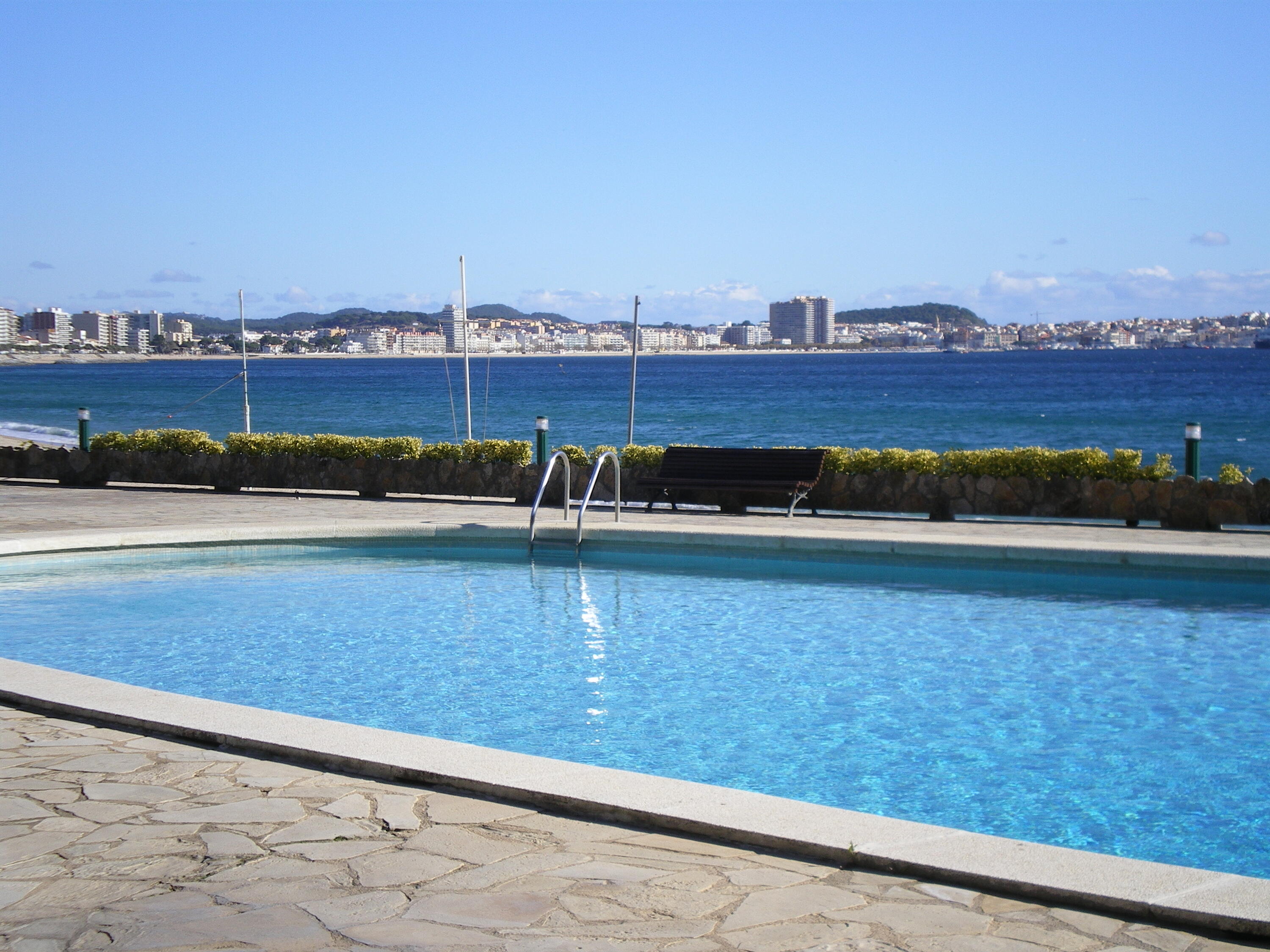 EDEN PLAYA. Modern apartament reformat recentment. 1a línia de mar, a Torre Valentina, amb vistes al mar i a la piscina. Dos habitacions dobles: una amb llit de matrimoni i una amb llits individuals. Bany complet amb dutxa i WC separat amb porta independent. Espaiós saló-menjador amb cuina semi-integrada totalment equipada. Gran terrassa amb impressionants vistes de tota la badia. Plaça de parking inclosa.