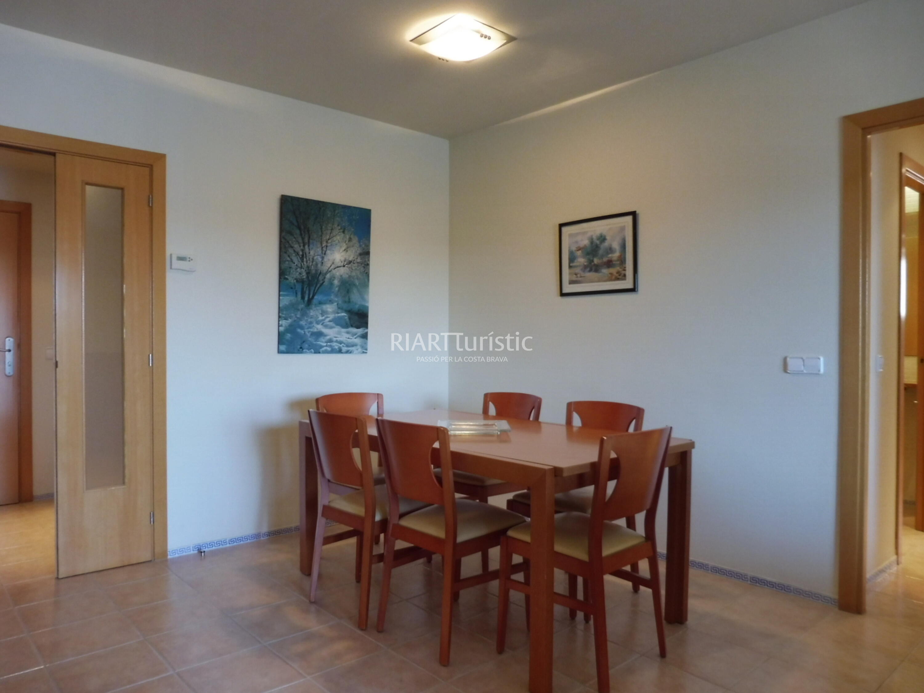 Es tracta d’un apartament ampli i lluminós, amb una gran terrassa amb vistes des de la segona liniea al mar. Totes les estances són espaioses: la sala-menjador disposa de dos sofàs i una taula per a sis persones, i la cuina està equipada amb tots els electrodomèstics i estris necessaris.
