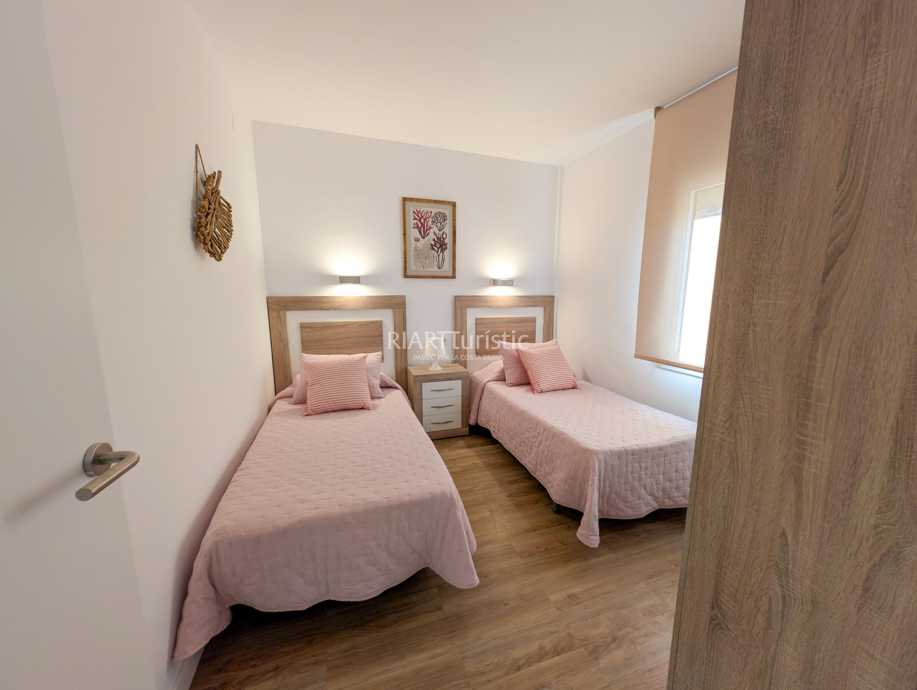 Ces appartements, récemment rénovés et au design moderne, disposent d’un grand salon-salle à manger, d’une cuisine moderne entièrement équipée, de deux chambres doubles (l’une avec un lit double, l’autre avec deux lits simples), et d’une salle de bain avec une grande douche.